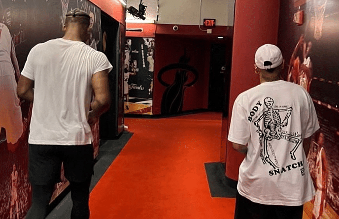 很快内马尔就出现在热火的训练场上,他和巴特勒拥抱,还比拼投篮,很显然术业有专攻,巴特勒中距离百发百中,内马尔则多次投丢,而且是站在距离篮筐更近的位置。内马尔应邀来到迈阿密,在热火的主场给巴特勒加油助威。