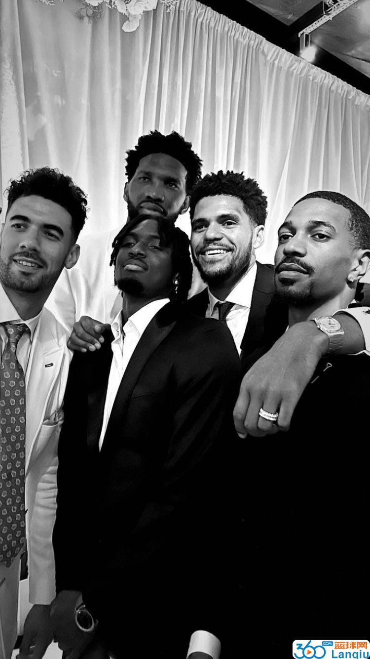究竟有哪些NBA球员参加了恩比德的婚礼?据美媒报道,76人球员哈里斯、马克西和梅尔顿来到现场,恩比德的前队友乔治-尼昂(目前效力骑士队)也来了,他们五人合影留念。