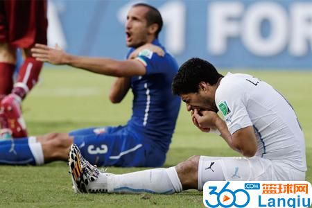 最著名的苏亚雷斯咬人事件,出现在2014年的巴西世界杯上。2014年6月24日,乌拉圭迎战小组赛对手意大利。在比赛的下半场,苏亚雷斯与意大利后卫基耶利尼发生激烈拼抢,情急之下苏亚雷斯开口咬伤了对方的肩膀,基耶利尼扯开球衣向裁判展示咬痕,不过并未得到重视。事发第二天,国际足联反应过来,对苏亚雷斯处以停赛9场、4个月足球禁入和罚款6.6万美元的重磅罚单。苏亚雷斯咬人,也成了那个夏天的热点话题。