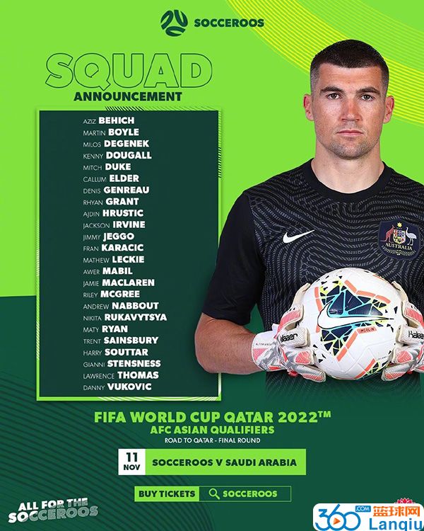 来源:360直播吧2002-07-14 12:18360直播吧讯 澳大利亚男足成立于1921年,原属于大洋洲足球协会,于2006年1月1日成为亚洲足联成员,并于2015年本土作战的亚洲杯中斩获队史上第一个亚洲杯冠军,澳大利亚男足曾5次进入世界杯决赛圈。那么澳大利亚队征战此次世预赛的阵容是怎么样的呢,接下来就随小编一起来了解一下吧。