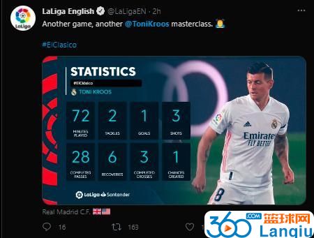 赛后,根据西甲官方发布的消息,克罗斯当选本场比赛最佳球员。上半场,克罗斯打入直接任意球,帮助皇马将比分扩大为2-0。