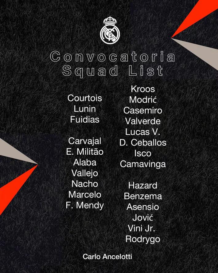 皇马超级杯大名单:本泽马领衔,维尼修斯在列