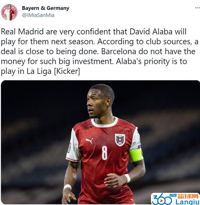 《踢球者》表示,皇马对于免签阿拉巴非常有信心,现在交易已经接近完成。巴萨此前也对阿拉巴表现出了兴趣,但他们没有足够的资金去完成这笔签约,而球员的首选是前往西甲踢球。